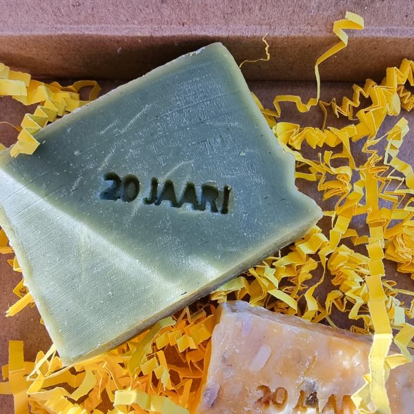 We vieren dit heugelijk feit met drie verschillende feestpakketten met flinke korting. Iedereen krijgt een gratis feestzeepje bij een bestelling. Komt het bedrag van je bestelling boven de 40 euro, dan krijg je bovendien een pistache kleurige zeep met de heerlijke geur van spar, ceder, sandelhout (50 gram) cadeau! Zolang de voorraad strekt.